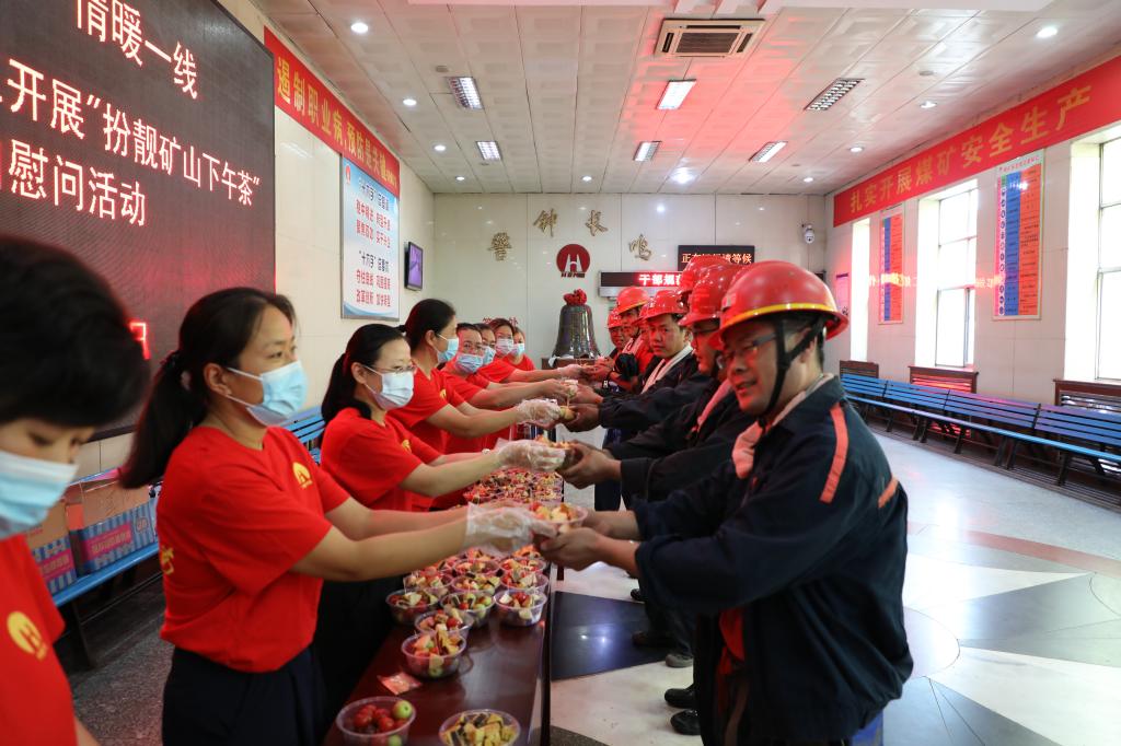 花好月圆度ä¸ç§‹ï¼Œæ·±æƒ…å˜±å’æš–心间。时值ä¸ç§‹ä½³èŠ‚æ¥ä¸´ä¹‹é™…,9æœ�16æ—¥ä¸åˆï¼Œç¥å—çŸ¿ç»„ç»‡åœ°é¢æœºå…³å•ä½å¥³èŒå·¥åœ¨äº•å£å€™ç½å¤§åŽ…å¼€å±•â€œçˆ±åœ¨ä¸ç§� 情暖一çº� 扮é“矿山下åˆèŒ¶â€äº•壿…°é—®æ´»åŠ¨ï¼Œåœ¨æ´»åŠ¨çŽ°åœºï¼Œä¼´éšç€é˜µé˜µæ¬¢å£°ç¬‘è¯ï¼Œå¥³èŒå·¥ä¸ºä¸Šä¸‹äº•çš„èŒå·¥å…„弟们é€ä¸Šä¸€ç¢—碗由月饼ã€è‹¹æžœã€åƒç¦§æžœç‰æ‹¼è£…而æˆçš„å°é£Ÿæ‹¼ç›˜ï¼Œå¹¶ç²¾å¿ƒç†¬åˆ¶äº†æ¡‚圆红枣茶ã€å†°ç³–èŠèŠ±èŒ¶ä¾›èŒå·¥å¸ˆå‚…们享用。èŒå·¥ä»¬åƒä¸€å£æœˆé¥¼ã€å–一å£èŠèŠ±èŒ¶ï¼Œç¬‘åœ¨è„¸ä¸Šã€ç”œåœ¨å˜´ä¸ã€æš–在心里,并纷纷表示一定会éµç« 守纪,注æ„å®‰å…¨ã€‚ï¼ˆæ’°ç¨¿ï¼šèµµçº¢èŽ²ï¼›å®¡æ ¸ï¼šé»„åº†åº†ï¼‰