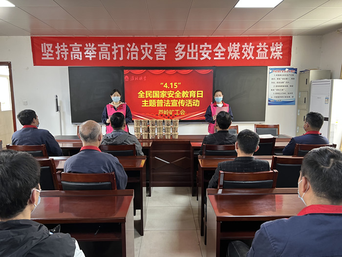 芦岭矿工会开展了“国家安全、你我同行�4.15全民国家安全教育日宣传活动,充分利用基层班前会宣讲、发放宣传单、播放专题片等方式,向广大职工大力宣传《宪法》《国家安全法》《保密法》等,讲解有关国家安全的政策和法律意识,引导广大职工树牢总体国家安全观、感悟新时代国家安全成就,为迎接党的二十大胜利营造良好氛围。(撰稿:李蓓蓓 审核:徐燕萍�