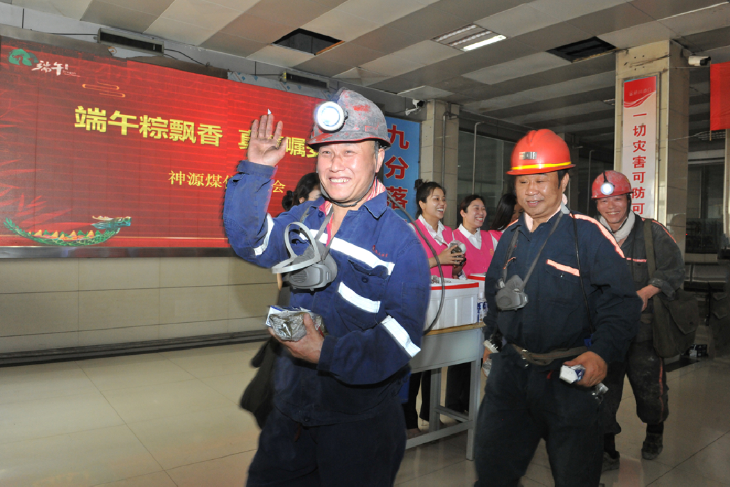 “来,师傅,吃个安全粽,下井作业一定要注意安全!�