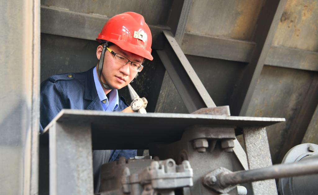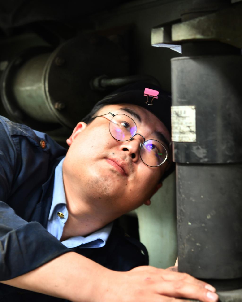 “插设安全防护信号,关闭截断塞门,插排风木塞......”在车辆钳工比武现场,临涣机辆段90后选手郭振鹏,参加更换120阀主阀及紧急阀考试项目,只见他右手握着检车锤,手摸眼看,一会儿蹲身,一会儿弓步,认真执行“手指口述法”和安全确认法。由于第一次参加技术比武,在安装开口销流程浪费了时间,他略感遗憾。