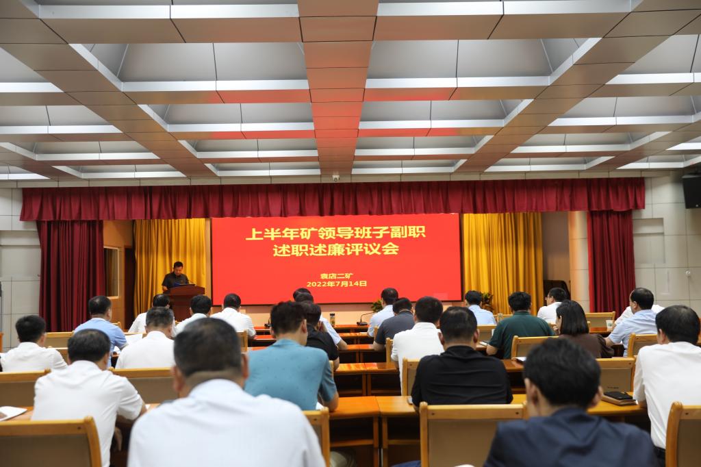 7月14日,袁店二矿领导班子副职集体参加年中“大考”,共同进行上半年述职述廉,现场接受全矿干部职工代表评议。