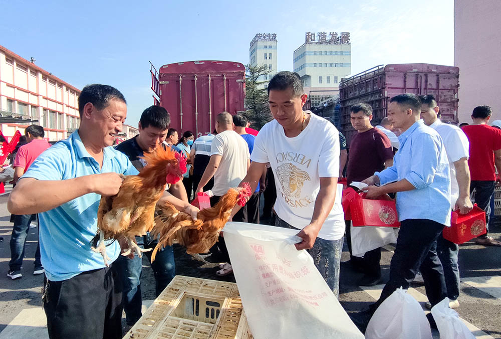 “走,赶大集去,听说这会广场上正在发月饼和鸡呢。”一名正在往发放现场去的职工满脸笑意对其工友说道。早上八点不到,职工们签字登记排队领取矿工会准备的活鸡和月饼,手推车、三轮车都派上了用场,卸货、分装、领取各项工作有条不紊,现场热闹非凡。