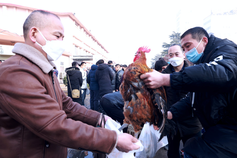 1月11日一大早,朱仙庄矿工业广场便热闹起来,“走,赶大集去,听说现在广场上正在发大公鸡呢,过年正好不用买了。”一名正在往发放现场去的职工满脸笑意对其工友说道。早上八点,职工们签字登记排队领取矿工会准备的活鸡、大米和食用油,手推车、三轮车都派上了用场,卸货、分装、领取各项工作有条不紊,现场热闹非凡。