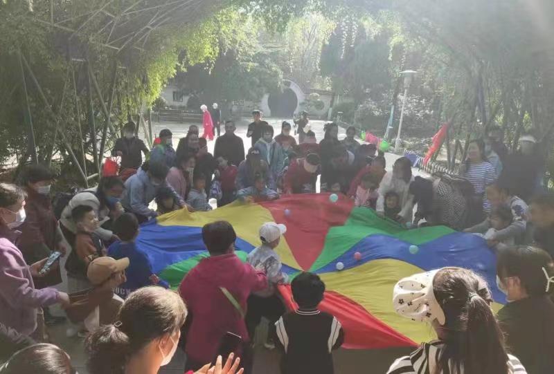 本次主题活动围绕“春”与“融合”在淮北市相山公园内进行,在活动中,从事孤独症康复治疗的康复治疗师们带领孤独症儿童感受春天、观察春天。在明媚的春光下扬起“彩虹伞”,在春天的草地上寻找“小星星”,在温暖的春风里捡起“小树枝”,在欢声笑语中与康复治疗师、儿童家长们“融为一体”。