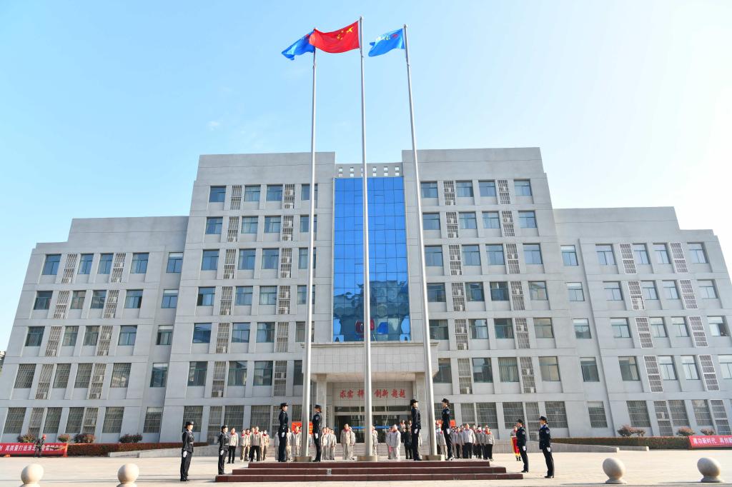 3月31日上午8时,在临选厂举行的四月份升旗仪式上,一支由物业公司女职工组建的女子升旗护卫队闪亮登场,她们统一身着制式服装,英姿飒爽,迈着整齐划一的步伐,庄严地护卫着国旗阔步走向升旗台。随着国歌声响起,擎旗手将手中的国旗朝空中奋力扬起,鲜艳的五星红旗冉冉升起,现场全体干部职工向国旗行注目礼。
