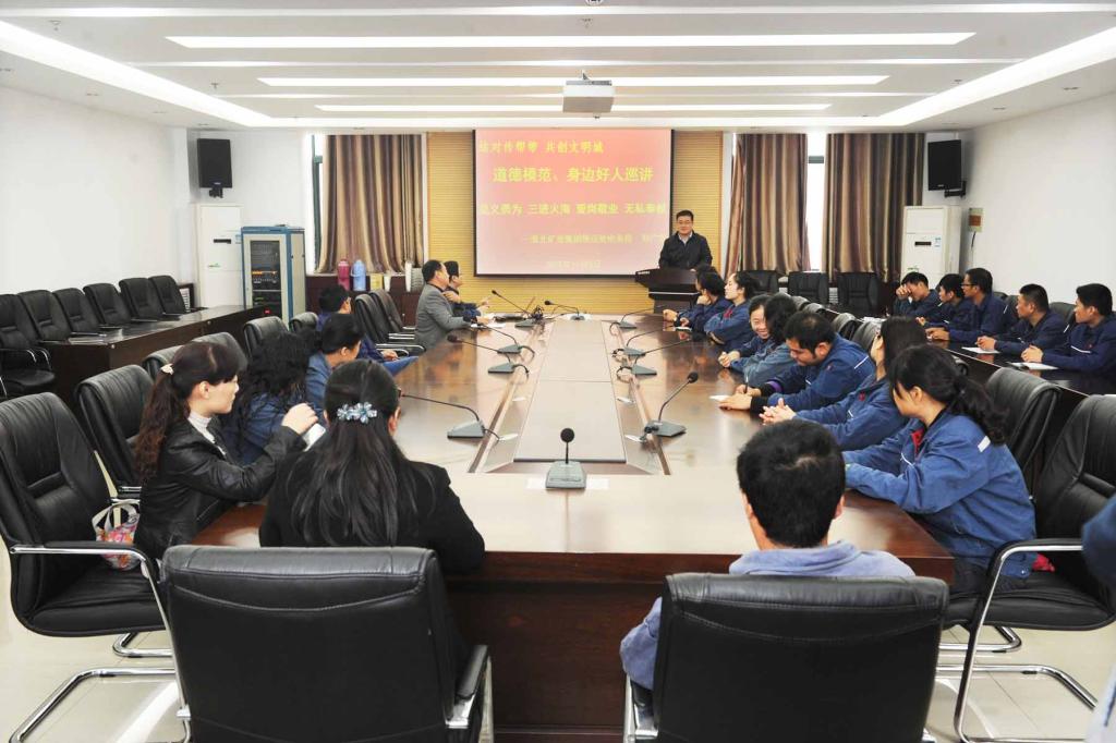 为弘扬和培育社会主义核心价值观,临涣选煤厂开办“好人讲堂”,用身边的人讲述身边的事、用身边的事教育身边的人,定期邀请矿区及本厂涌现出的劳动模范、安全明星、道德标兵等各类好人登坛讲述先进事迹,传递社会正能量。图为日前,中国好人、淮北矿业铁路运输处电务段安监室主任刘广立座客该厂“好人讲堂”,讲述自己“三进火海、见义勇为,爱岗敬业、无私奉献”的感人事迹。