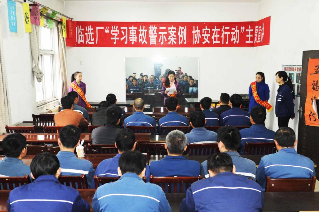 11月17日,临选厂女工宣传小分队来到西区机电车间会议室,以“学习事故案例警示教育协安大行动”为主题,开展安全宣讲活动。这是该厂女工协安活动的一个缩影。