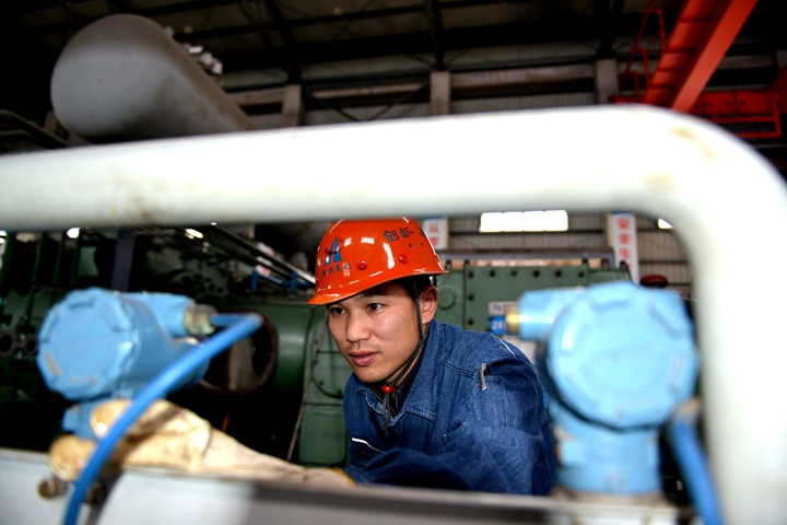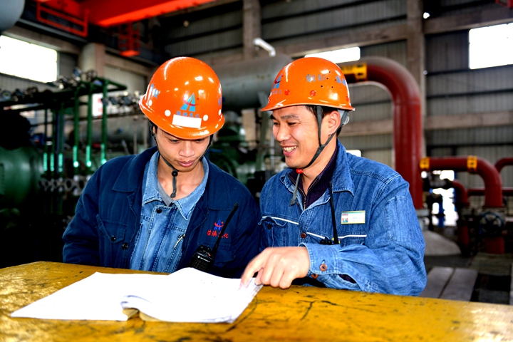 前几年,因德国螺杆式压缩机运行极不稳定,导致甲醇系统处于半停产状态,成为公司亏损的主要原因,造成职工收入下降。一些员工有情绪、有牢骚,在班中操作时就能反映出来,心思细腻的郭大方不会放过任何的蛛丝马迹,他看在眼里,记在心里,利用休息时间跟他们聊天,“别把情绪带到岗位上,心里有憋屈就说出来,万一分神造成误操作就会出大事,只要我们都能干好自己的活,我就不相信咱们以后没有好日子过!”如今,经过技术改造,甲醇系统新增三台国产往复式压缩机机。郭大方带领班组员工,探讨研究往复机的使用和操作方法,成天在现场摸爬滚打,很快就熟练掌握了往复机的操作。他们就是这样用勤劳的双手和积极进取的精神创造了一项项丰硕的成果,2014年甲醇装置完成20万吨的设计产能,当年12月还创下了日产粗甲醇780吨的最高纪录,职工收入得到稳步提升。