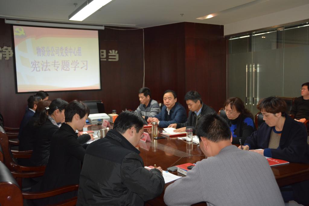 12月4日,根据集团公司要求,物资分公司结合实际,在公司七楼会议室,开展了党委中心组宪法专题学习,物资分公司在家的领导及中心组其他成员20多人参加了专题学习。