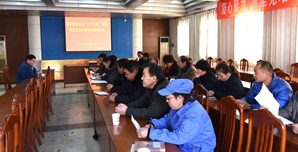 12月17日下午,雷鸣科化公司在通讯楼四楼会议室召开“三严三实”专题民主生活会征求意见座谈会,基层各单位的职工代表20余人参加了会议。