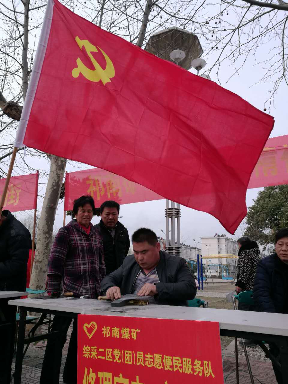 为深入推进“两学一做”学习教育,增强广大党、团员全心全意为人民服务的奉献意识,将雷锋精神落到实处。3月3日,“3·5”学雷锋活动日前,祁南矿党群工作部组织了基层各单位党支部书记、团支部书记到该矿工人村开展学雷锋便民服务活动,在上午短短的3个小时里,17个党支部的68名志愿者各显技能,开展了家电维修,修伞,电焊修补,疏通下水道,配钥匙,电脑维修,量血压,健康咨询等10多项服务项目。职工家属纷纷前来求助,活动场面热火朝天。尤其是家电维修、磨刀、配钥匙前排起了长队,志愿者在自己负责的岗位上忙碌着,直至最后一名职工家属满意离开。据统计,本次活动共服务400余件次,得到了职工家属的高度赞扬。