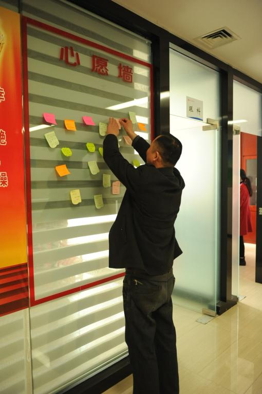 在工程处“三违”帮教室,有一个安全心愿墙,记载着每一位来此接受帮教的“三违”职工安全“微心愿”。两三句话,几十个字,小小心愿墙,记载了“三违”职工接受帮教后浓浓的安全情。“三违”职工通过安全心愿墙,说出了心里话,晒出了微心愿。(责编:孟慧奇)