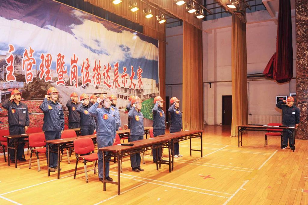 近年来,该厂积极搭建班组建设展示与班组长成长平台,坚持每季度举办一场班组自主管理暨岗位描述展示大赛,由党群工作部在开赛前一周,从基层各车间(分厂)现有班组中随机抽取四个班组参赛。参赛班组,统一规定由1名班组长和12名班组成员组成。大赛主要涉及“班前礼仪风采再现”、“岗位职责描述、风险预控安全确认及应急处置演练”、“班组安全知识有问必答”、“班组微课堂模拟化教学”、“班组管理成果或文化展示”、“岗位作业规程问答”等方面的内容。参赛班组还结合实际,增加了事故案例教育、亲情安全嘱托、安全技能展示等自选环节,给比赛增添了许多亮点和色彩。