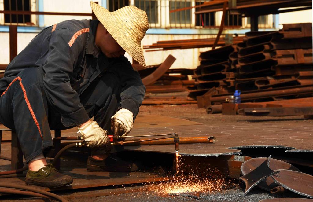 今年以来,袁店一矿坚持走改革创新的高质量发展之路,通过改进工艺、技术革新、自主创造等途径,降低生产成本,提高效率效益。图为技术工人正在自主创新加工制作瓦斯抽放管路使用的法兰盖,一个自制的法兰盖成本仅为市场价格的五分之一。