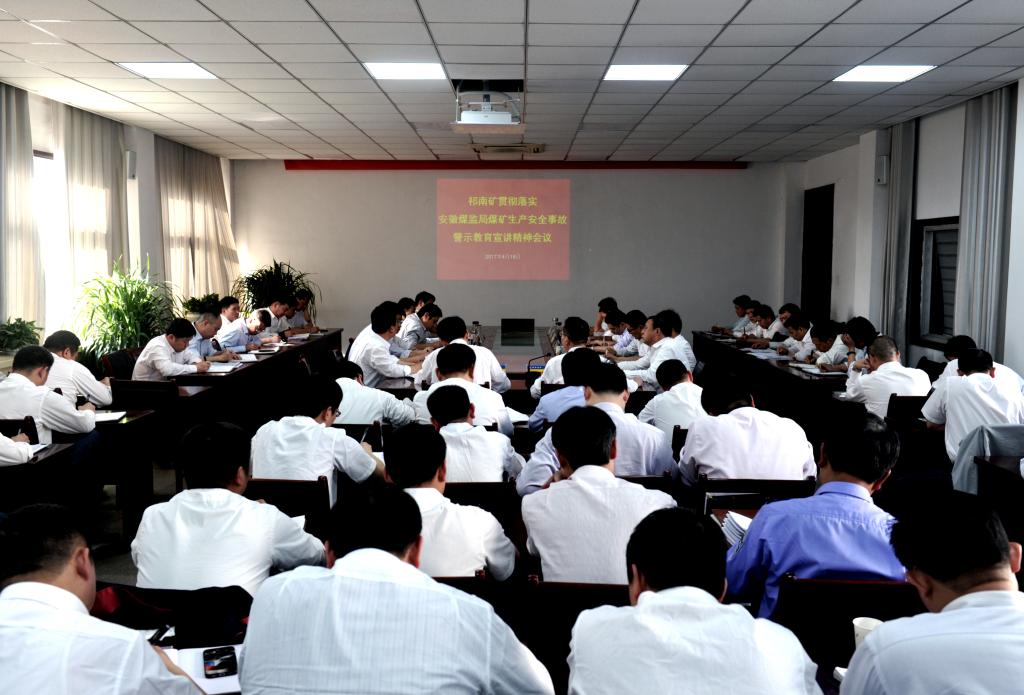 4月18日下午,祁南矿组织矿副总以上领导、副科及以上管理人员参加安徽煤监局煤矿生产安全事故警示教育宣讲会,会议一结束迅速就会议精神进行再强调、再部署。