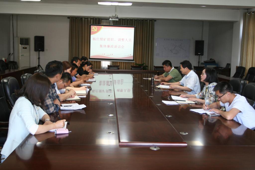 5月16日,杨庄矿对新提职及调整到主持全面工作岗位的管理人员进行集体廉政谈话,为他们敲响廉洁从业的警钟,促使他们在新的工作岗位上,认真履行党风廉政建设职责,时刻绷紧廉洁自律弦,做到清醒任职、清正履职。