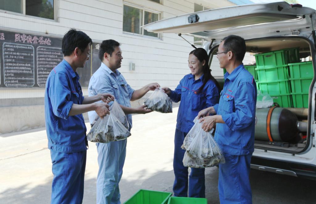 端午节前夕,为了让生产一线职工过上一个祥和的节日,切身感受到工会的关爱和温暖,公司工会提前采购了鲜肉和蜜枣粽子向一线职工发放。一位职工接过手中的粽子高兴地说:“公司时刻不忘关爱职工,我们更应该爱岗敬业,积极工作,生产出质量过硬的产品来”。