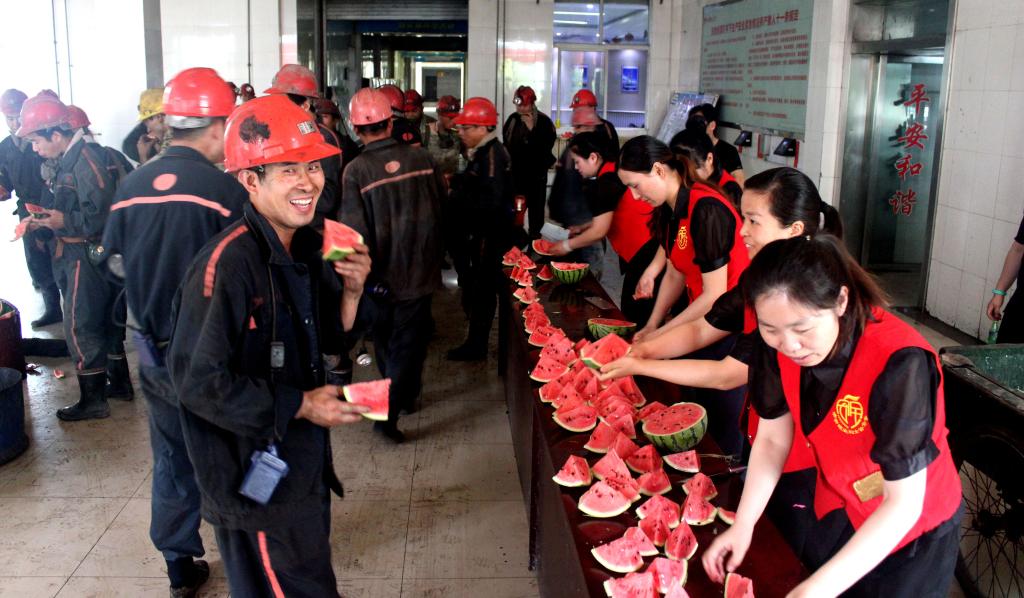 连日高温,为做好防暑降温,保障员工身体健康,传递公司对员工的关心,6月1日中午,杨柳煤业协安员带着西瓜来到副井口开展“酷暑送清凉,关怀暖人心”活动,为一线员工送去清凉和工会“娘家人”的关怀。