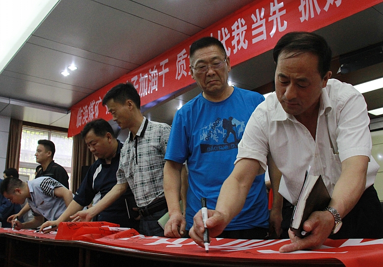管理人员人人立下“军令状”,职工个个写下保证书,安全签名挂到井口,宣传牌板摆到工人村。在开展“撸起袖子加油干,质量时代我当先,安全生产作贡献”活动中,临涣矿全矿总动员、全员齐参与,各项安全活动陆续展开,矿井上下安全生产氛围空前浓厚。