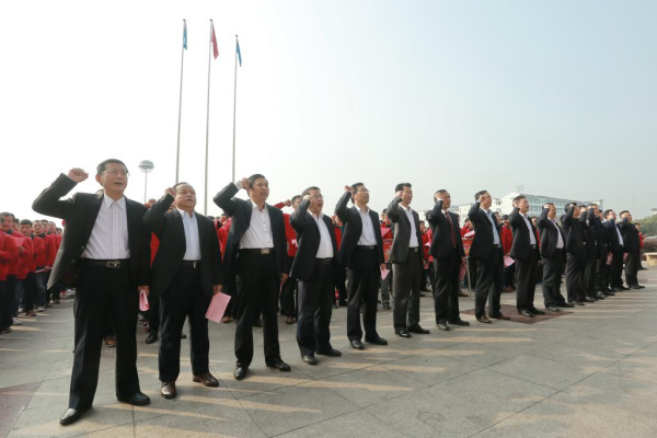 活动现场,全体人员进行安全宣誓:为了安全生产、为了家庭幸福、为了涡北发展,我宣誓:牢记安全第一、严守“两个规范”、狠反“三违”行为、做到四不伤害,好!好!好!