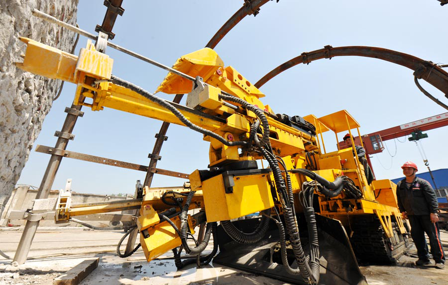 工程处积极引进淮北矿区首台、重达35吨的大型岩巷钻装机,实现了两条机械臂钻孔、挖装运输矸石、履带自行多重功能,有效破解百米井下硬岩掘进难题,降低工人劳动强度,提高掘进效率。