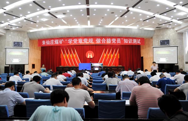 近日, 朱仙庄矿在安全教育室组织60多名党员开展了“学党章党规、做合格党员”知识测试。