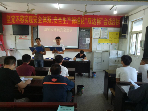 该矿组织基层单位党员为本单位传习员,利用班前会、安全例会开展安全宣讲活动。党员传习员围绕习近平总书记关于安全生产重要论述,贴近矿区当前安全中心工作,以饱满的精神状态和饱含深情的语言,深深感染每一名听众,潜移默化中增强了矿工们的安全意识。职工纷纷表示要立足岗位,用实际行动扎实推进“双达标”会战活动,确保实现安全“四零”目标。