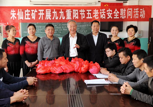10月16日中班,朱仙庄矿关工委开展“九九重阳节‘五老’话安全”慰问活动。