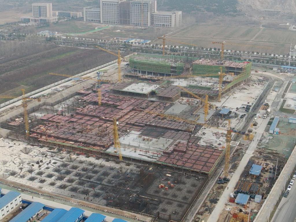 上图为淮北市人民医院新院工程在无人机拍摄下的全景画面