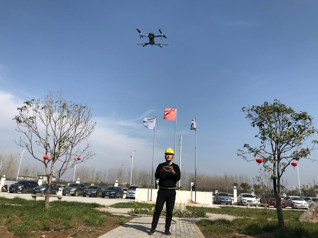 上图为该项目部安全员董振华正在操控无人机开展高空巡查。