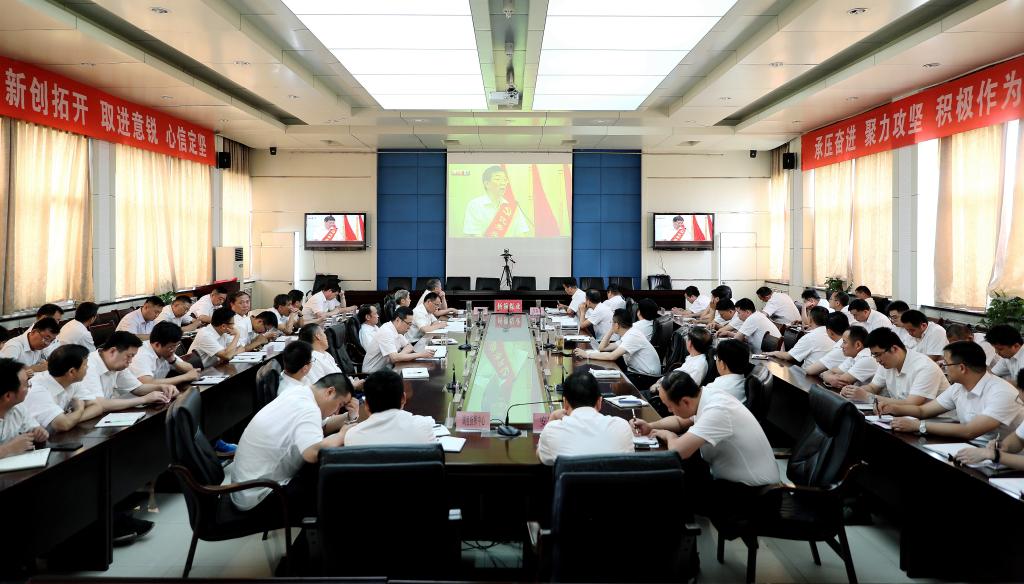 6月25日下午,杨柳煤业党委组织广大党员干部,在办公楼视频会议室分会场,收看台湾a片 党委举办的优秀共产党员先进事迹报告会。