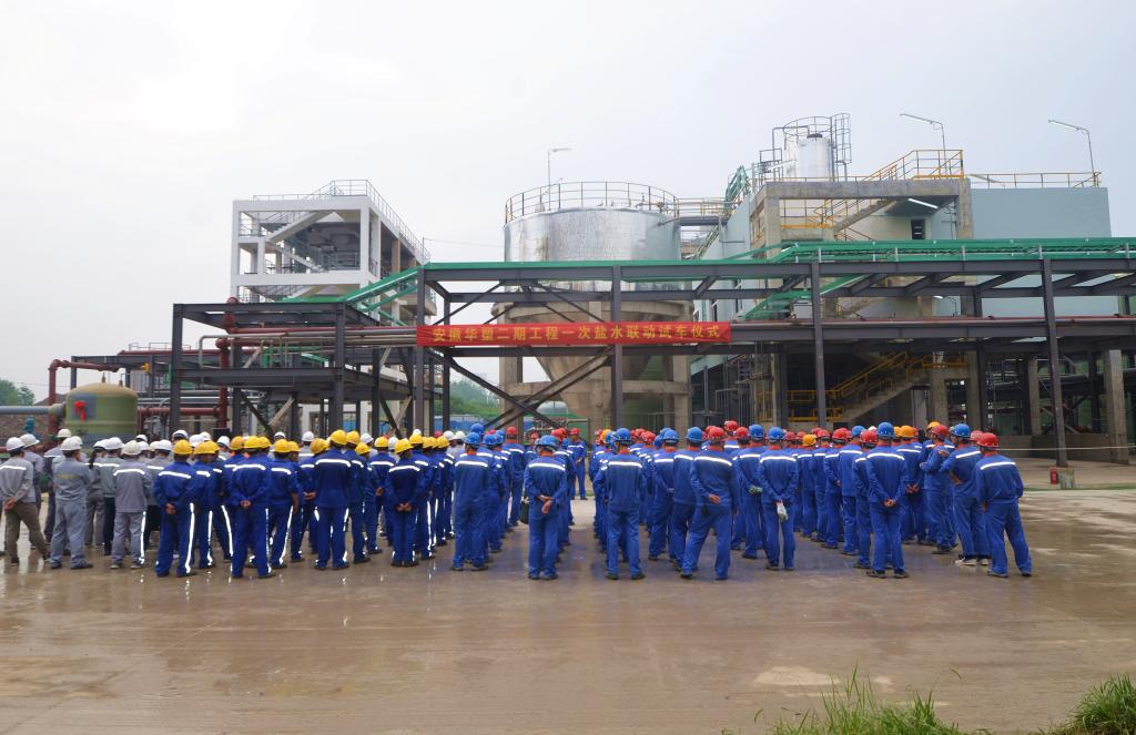 7月1日,华塑股份举行二期氯碱项目一次盐水投料试车启动仪式。华塑股份领导、副总师、机关与基层代表,中国化学工程第六建设有限公司北京分公司副总工程师尚宝忠、项目经理顾林、第三建设有限公司滁州分公司经理庞辉、青岛华鹏工程咨询集团有限公司安徽华塑项目总监理工程师赵学根、山东胜利建设监理股份有限公司安徽华塑项目总监代表陈月跃参加仪式。