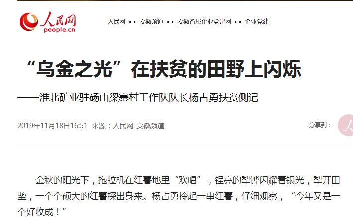《人民网》:“乌金之光”在扶贫的田野上闪烁