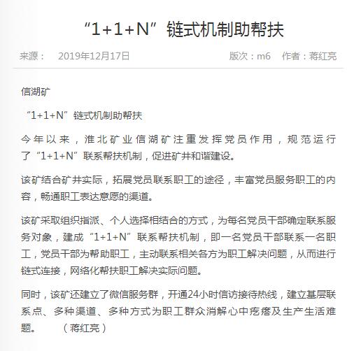 《中国煤炭报》:台湾a片 信湖矿“1+1+N”链式机制助帮扶