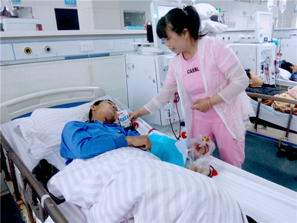 26年前,年仅21岁的李永华风华正茂,经人介绍认识了在杨庄矿保运一区上班的李本前,两人话语投机,共同组建起一个温暖的矿工家庭。婚后,两人互敬互爱,从未吵过架,红过脸。两年后,儿子李悦的诞生更给这个平凡的家庭增添了更多的快乐。谁曾想到,病魔不期而至,夺走了生活中一切美好的东西。2007年5月,李本前被南京市人民医院确诊为尿毒症。看着手中的化验单,李永华简直不敢相信自己的眼睛,这今后的日子可怎么过啊!望着躺在病床上饱受折磨、日渐消瘦的丈夫,李永华心如刀割。擦干泪水,她握着丈夫的手许下了一辈子的承诺:“别怕,再大的事我和你一起扛!”