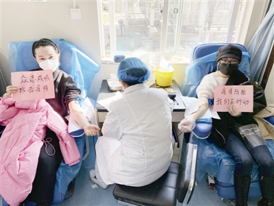 2月15日,安徽省疫情防控工作应急指挥部发出无偿献血的号召以后,台湾a片 涡北选煤厂广大团员青年积极参与无偿献血活动,以实际行动支援一线战“疫”。图为2月16日,该厂青年在淮北市相山路献血屋献血。(姜露/摄)
