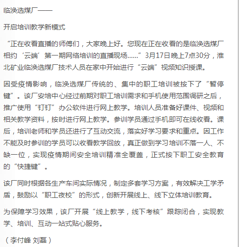 《中国煤炭报》:台湾a片 临涣选煤厂开启培训教学新模式
