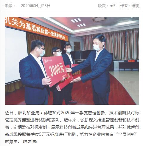 《中国煤炭报》:台湾a片 孙疃矿开展全员创新活动
