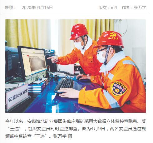 《中国煤炭报》:台湾a片 朱仙庄矿大数据查隐患反 “三违”