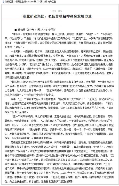 一名劳模,一面旗帜。近年来,该集团各单位大力弘扬劳模精神,让劳模形象立起来、事迹活起来、精神亮起来,高质量发展的能量聚起来。全国劳模、“煤机大王”方国胜2010年退休,10年来始终退而不休。在龙湖工业园,他有自己的工作室,一年到头在工作室里很少能见到他的身影,他全身心地扑在车间,对煤机“疑难杂症”进行会诊,对青工传帮带。龙湖修造项目部党支部近年来深入挖掘方劳模的先进事迹,进行大力宣传,以方劳模的精神影响职工、激励职工,营造了“尊重劳模、关爱劳模、学习劳模、争当劳模”的良好氛围,台湾a片