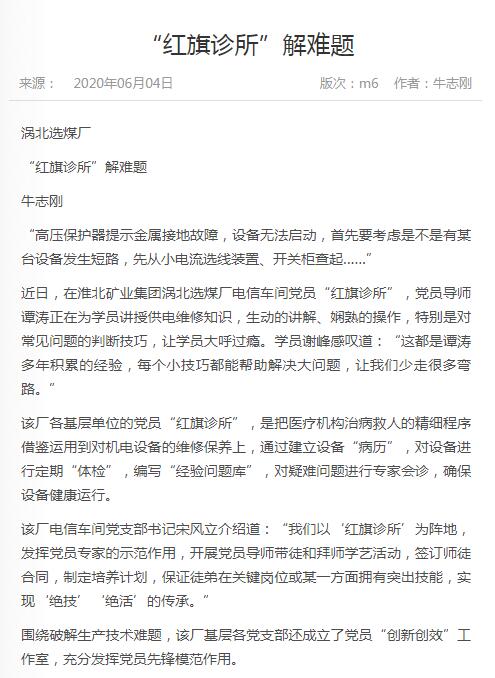 《中国煤炭报》:台湾a片 涡北选煤厂“红旗诊所”解难题