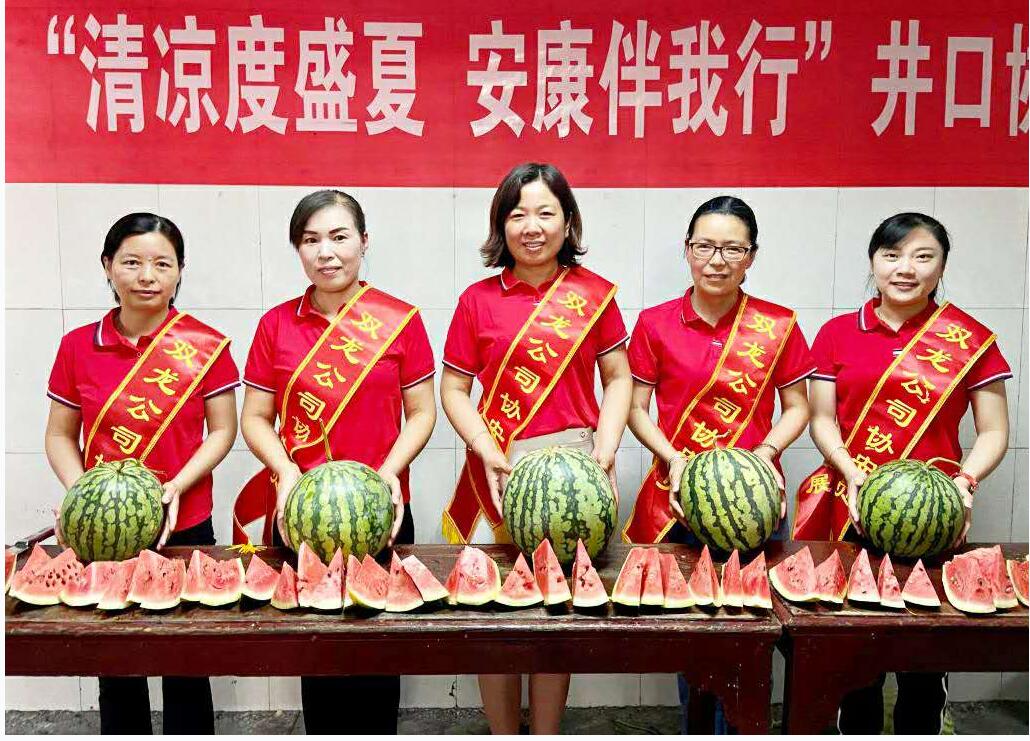“师傅,西瓜很甜ï¼åƒä¸€å—,解渴。â€â€œå¸ˆå‚…ä»¬ï¼Œé«˜æ¸©å¤©æ°”ï¼Œå’±ä»¬è¦æ³¨æ„劳逸结åˆï¼Œæ—¢è¦èº«ä½“å¥åº·ï¼Œæ›´è¦æ—¶åˆ»ç‰¢è®°å®‰å…¨ï¼Œå®‰å…¨è¦é’Ÿåœ¨å¿ƒä¸é•¿é¸£ï¼Œå¢žå¼ºè‡ªæˆ‘ä¿æŠ¤æ„识,实现安全生产。â€åŒé¾™å…¬å¸å·¥ä¼šâ€œæ¸…凉度盛å¤Â·å®‰åº·ä¼´æˆ‘è¡Œâ€æ´»åЍä¸å¥³å·¥å安员一边把西瓜递到èŒå·¥çš„æ‰‹ä¸ï¼Œä¸€è¾¹æ¸©é¦¨æé†’é“ã€�