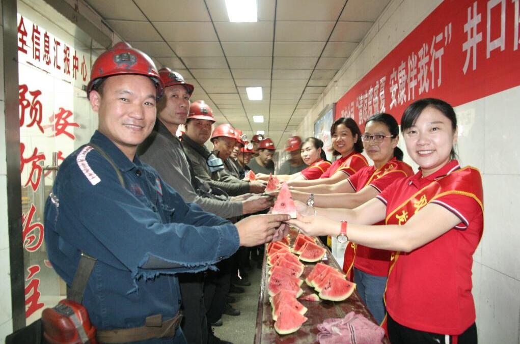 集团è¢åº—一矿工会组织女工å安员“å¤é€æ¸…å‡‰ï¼Œå…³çˆ±ä¸€çº¿â€æ·±å…¥ç§‘区ã€å‰¯äº•å£ç‰æ…°é—®æ´»åŠ¨ï¼Œå°†ç»¿è±†æ±¤ç‰é¥®å“é€åˆ°æœ€è‰°è‹¦çš„åœ°æ–¹ï¼ŒçŒ®ç»™æœ€è¾›è‹¦ã€æœ€éœ€è¦çš„äººï¼Œä¸ºç‚Žç‚Žå¤æ—¥è¾›å‹¤åŠ³åŠ¨åœ¨ç”Ÿäº§ä¸€çº¿çš„èŒå·¥ç»™äºˆæœ€è´´å¿ƒçš„关爱ã€�