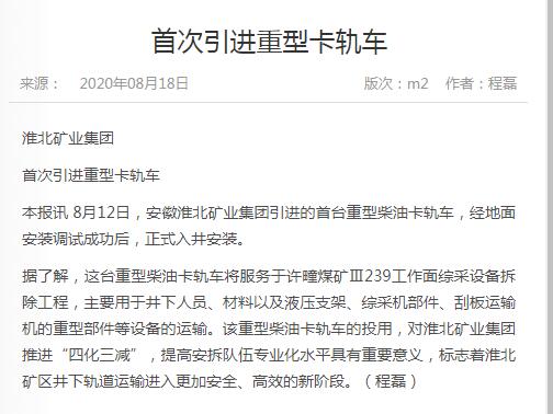 《中国煤炭报》:台湾a片 首次引进重型卡轨车
