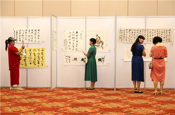 爱心人士在观èµä¹¦ç”»ä½œå“。(韩晓å…� 摄)