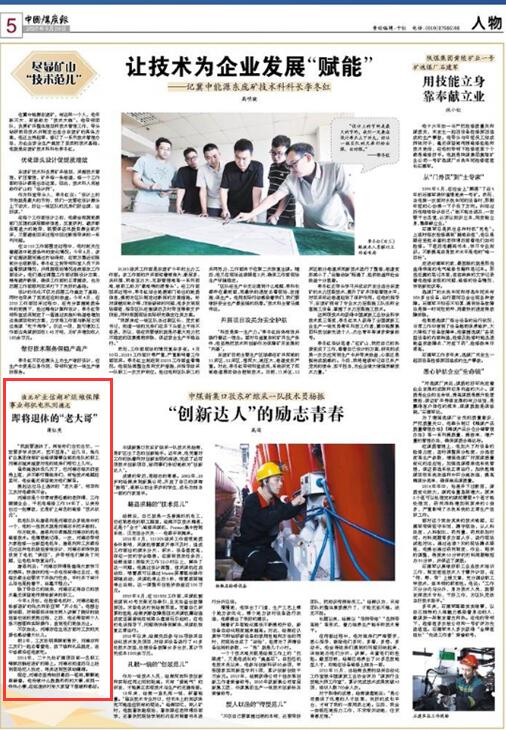 唐恩利说:“刘德志师傅是值得大家学习的榜样。快退休的他一点也没有得过且过,他每次都主动要求下井执行任务,平时井下有什么活也是抢着干,丝毫不惜力。”