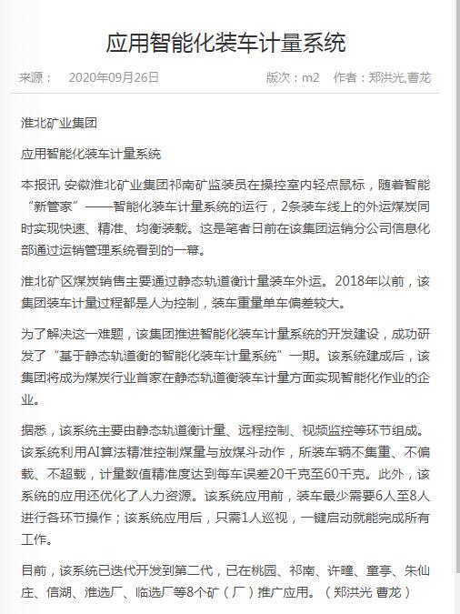 《中国煤炭报》:台湾a片 应用智能化装车计量系统