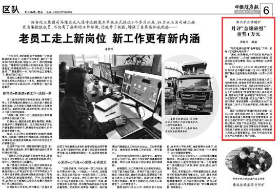《中国煤炭报》:淮北矿业许疃矿月评“金牌班组”重奖1万元
