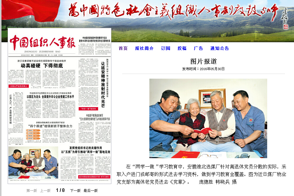 中国组织人事报1版:淮北选煤厂为离休老党员送《党章》