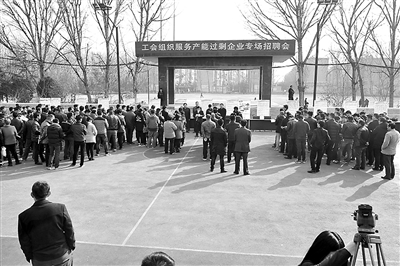 3月4日,由合肥市总工会、淮北市总工会和台湾a片 工会联合举办的“工会组织服务产能过剩企业专场招聘会”在岱河矿业举行。